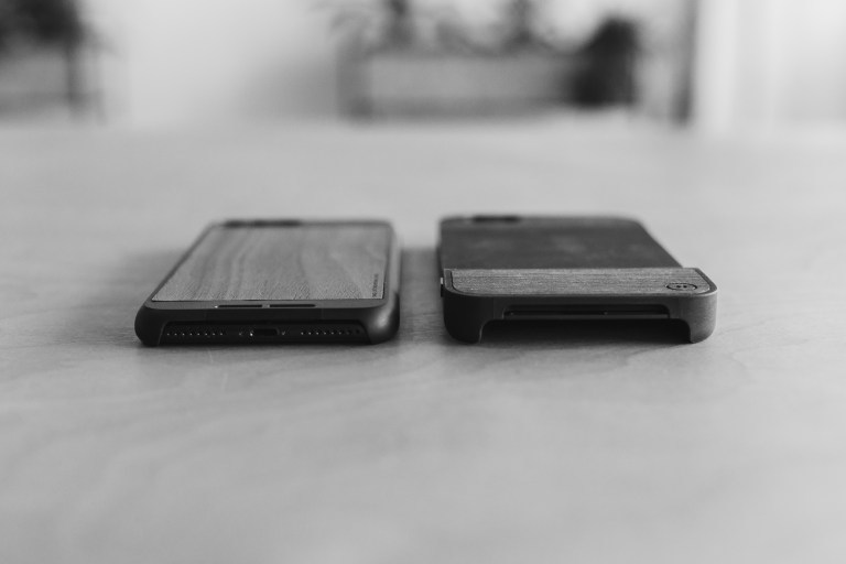 Of everything we tried, we found multiple variables contributed to making the phone easy to hold. The edges had to have the right balance of a gentle curve with a subtle crisp edge. The material blend had to be just right so it wasn’t too slick or too grippy. Trying a variety of surfaces, we found that wood and canvas provided enough texture to grip the back panel, but didn’t make it difficult to slide the case in and out of your pocket. We are still tweaking and testing more materials that we might integrate in the future.